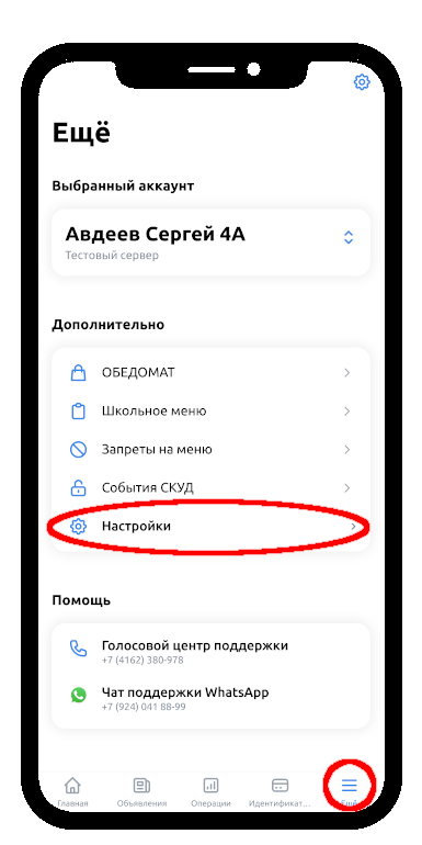 - Перейдите на вкладку "Ещё", расположенную на нижней панели навигации, и нажмите на пункт "Настройки": изображение